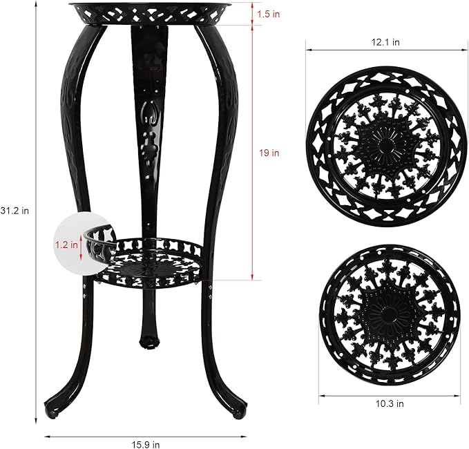 - PRACTICAL: 2 Tier design able to hold big plants on the top, and smaller ones at the bottom; Diameter: Top 12.1”, Bottom 10.3”; a pretty plant display stand for Christmas cactus and spider plants indoor outdoor