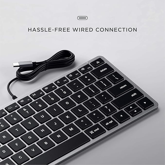 Satechi Slim W1 Wired Backlit Keyboard, Illuminated Keys & USB C Connection, for MacBook Air/Pro M4, iPad Air/Pro M4/M3, iPad mini, Mac mini, iMac and More