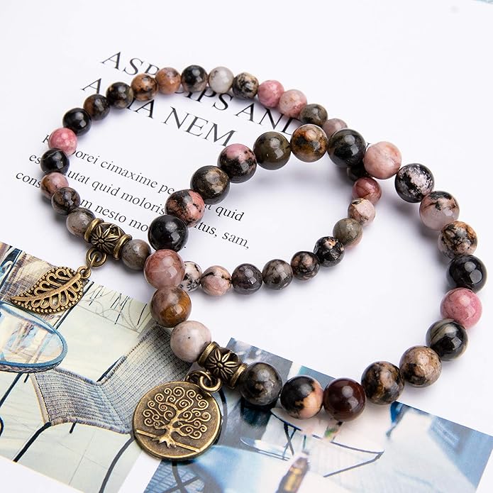 - Natural stone bracelets for women: Each beads in this fashion&beautiful bracelet are hand picked and strung on high quality elastic stretch cord to ensure the best quality. Durable and flexible.Each bracelets set with a bronze life tree and leaf charm.Great for daily wear, anniversary,party etc. Please note natural stones vary in colors. Each bead is unique. You will receive the similar item as picture shown.