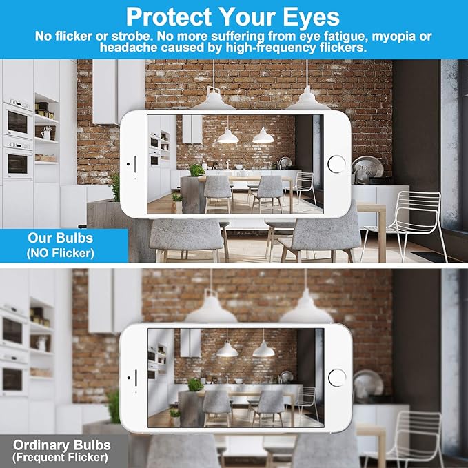 - Good for Eyes & Healthy:No mercury, no UV & IR, no dazzling, flicker-free. Our 60Watts Equivalent Edison Light Bulbs eliminate eyes exhaustion caused by the conventional light bulbs. Ideal for your bathroom, bedroom, kitchen, living room, hallway, front door, foyer, or any places that need decorative lighting