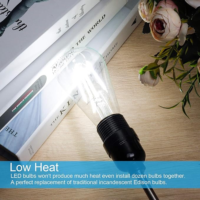- 25,000Hrs Lifespan: Low power consumption provides the daylight white LED filament bulb over 25,000 hrs lifespan! Making you feel more comfortable and no longer need to replace the antique led bulb frequently