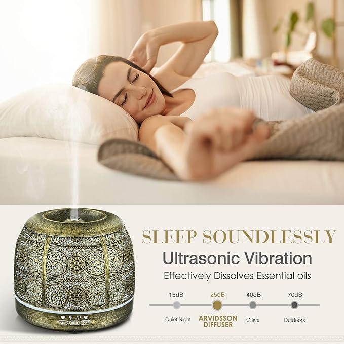 - ARVIDSSON 500ml ultrasonic diffuser for essential oils provides a customized aromatherapy experience with an elegant Moroccan design that will elevate any home décor. With longer run times and various light modes, this diffuser will let you experience essential oils in a whole new way.