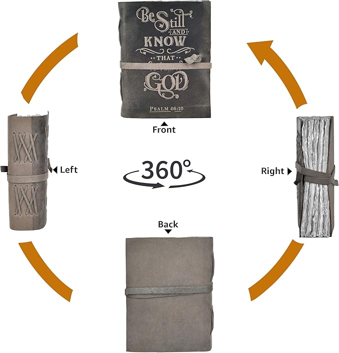 LEATHER VILLAGE Vintage Leather Journal with Psalm 46:10 Bible Verse–13''x8'' Embossed Prayer Study Journal for Women & Men – 200 Pages Handmade Cotton Deckle Edge Watercolor Paper - Grey Paper