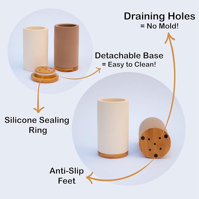 - Easy-to-Clean with Removable Bottom: Unlike typical holders that are a pain to clean, our bathroom toothbrush holder has a detachable base that ensures easy cleaning of the cup! Built with holes that drain excess moisture.