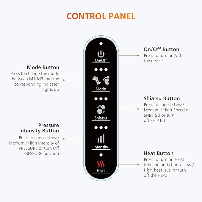- Multiple Settings: Snailax foot calf massager machine has 3 auto massage modes and 3 levels of intensity to meet your best needs. The soothing heat function on shiatsu balls further relax your sore and tense muscles,helps improve blood flow circulation and improve sleep. There are 2 heat levels can be adjustable.