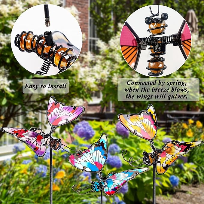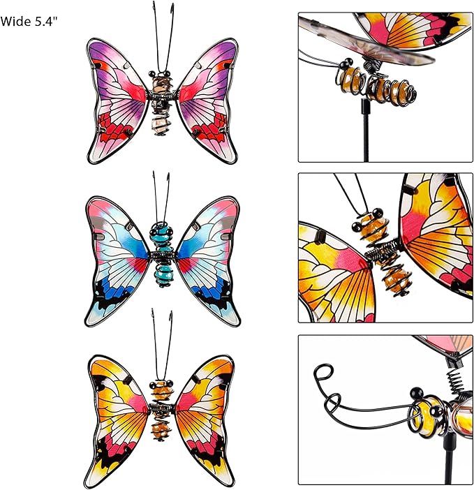 - Butterfly Garden Stakes: 3 Pack 20 Inch Colorful Butterfly garden stakes decorative made from high grade rust-proof metal and thick colorful glass. Place them in your garden, yard or anywhere you want, they will bring more refreshing feel of nature.