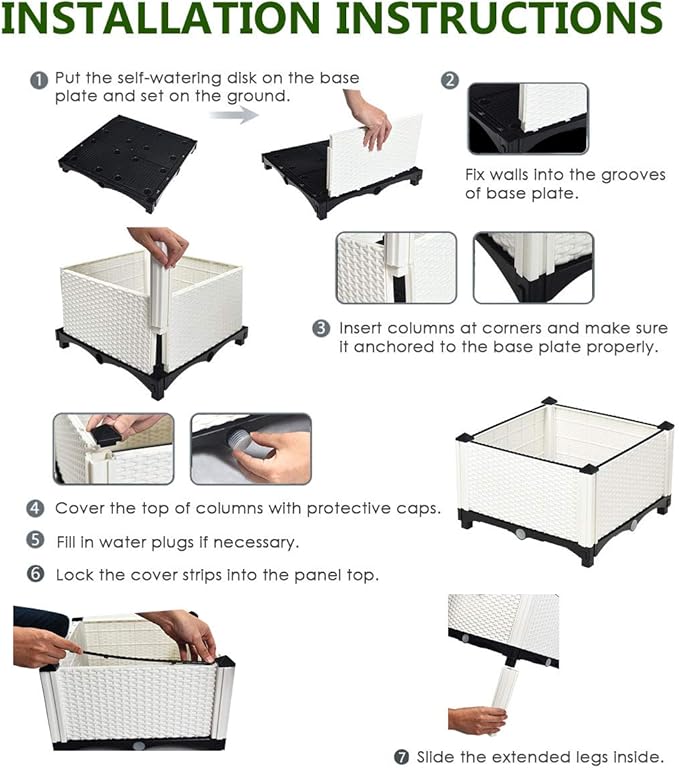 - đ»ăPremium & Weather-resistant MaterialăMade of premium and durable PP material, this garden bed kit is tough, weather-resistant, and durable, and will withstand seasonal changes without warping, chipping, cracking, peeling or fading! Stable rectangular structure supports heavy loads strongly. The chemical-free surface ensures safe planting.
