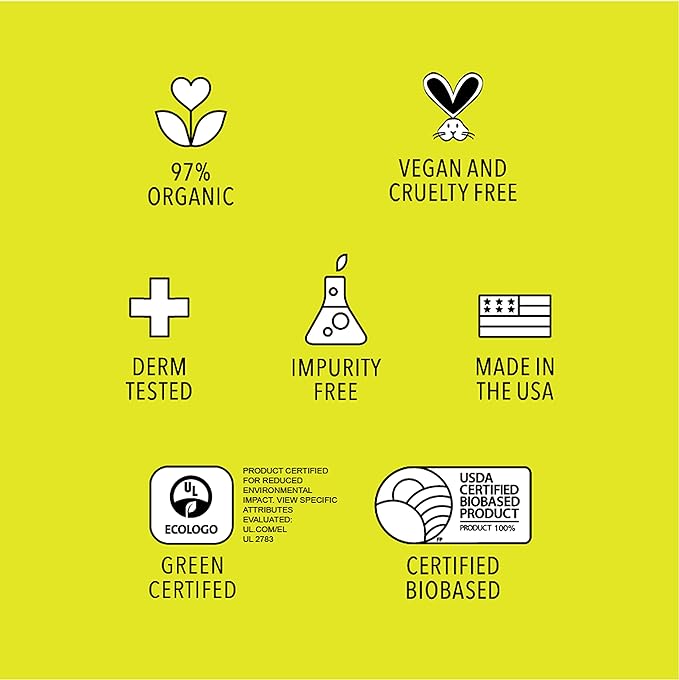 - 97% Organic Ingredients, 70% v/v USDA Organic Certified Ethyl Alcohol, USDA Certified Biobased Product 100%