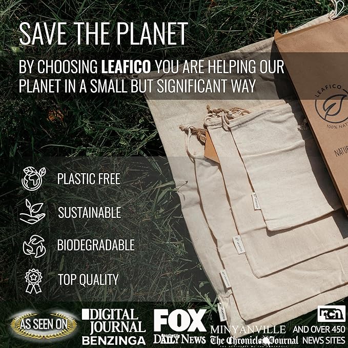 LEAFICO Reusable Produce Storage Bags - XX-Large 19x23 3 Pack - Breathable Muslin Fabric Sacks with Drawstrings – Dust-Proof Travel Cotton Bags for Laundry, Clothes, Purses