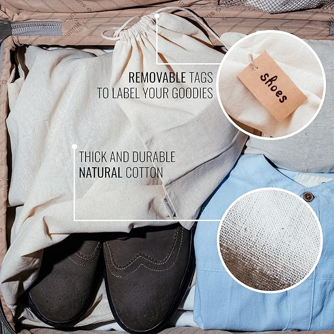 - Earth-Friendly - No more plastic. Use this organic, 100% Biodegradable Extra Large Cotton Muslin storage dust bag with a smooth and delicate fabric, which allows for air circulation. Can also be used as laundry bags