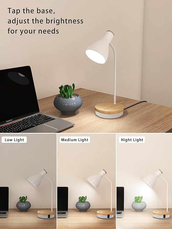 - 【3 WAY DIMMABLE TOUCH LAMP】The cute desk lamp is easy and convenient to adjust the brightness stages (low, medium, high, off); Low light is great for steady sleep or nursing; Medium light is suitable for daily use and High light is bright enough for reading and working. Tapping the sturdy base to dim the brightness levels to meet your various demands at different times or occasions.