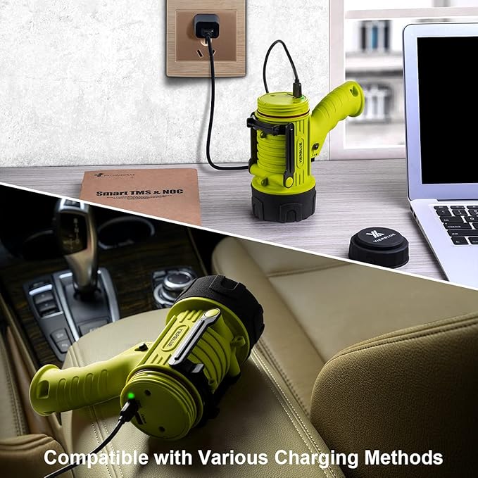- FOUR HOURS FAST CHARGING: With advanced USB-C charging technology, recharge in just 4 hours. Compatible with any USB charging port, you can charge this rechargeable spotlight at home or in your car.