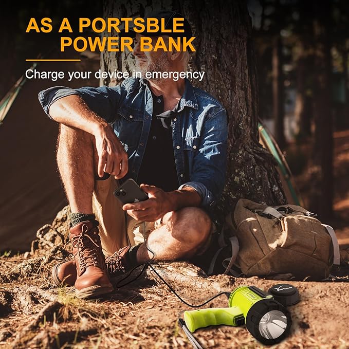 - WATERPROOF & FLOATING, IMPACT RESISTANT: This spot lights outdoor handheld is IP67 waterproof and submersible up to 3ft, and even float back up to the surface if it’s dropped in water. The High strength ABS housing with silicone protective case ensures maximum durability, rugged body withstands dropping from up to 10ft.