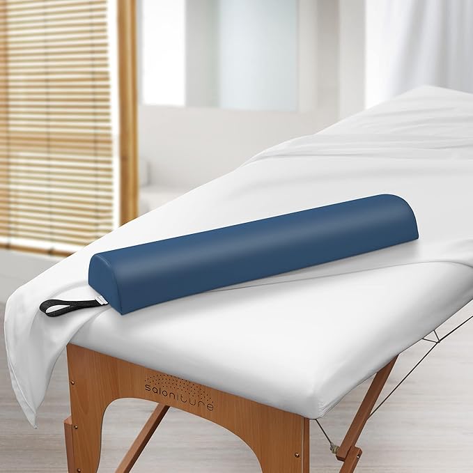 - Therapeutic comfort: Keep your clients comfortable with deluxe supportive cushions for proper positioning during massage and therapy. This semi-round pillow is flat on one side to prevent rolling out of position when in use. Provides firm yet gentle support and contours to the body. Designed to take strain off the lower back and vertebrae by placing underneath the knees, or ankles, it can also be used as a headrest and support for the neck.