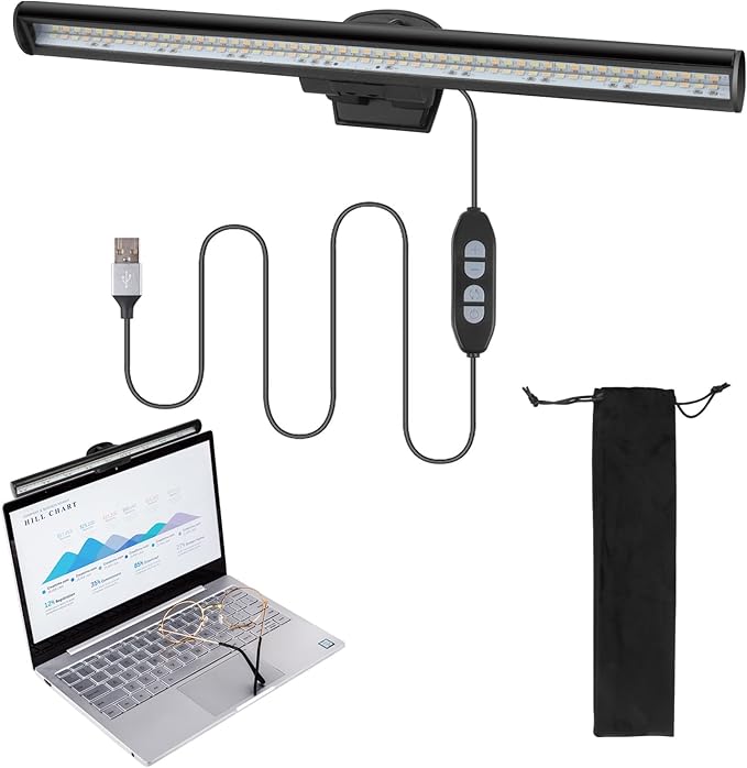 - Portable Laptop Screen Light Bar: This screen light bar has a small size(26 cm length x 2.2 cm width), light weight(about 130 g), Easy to carry . Especially suitable for laptops. It is mouted on the top of monitor by the clip. Does not need screws or tape