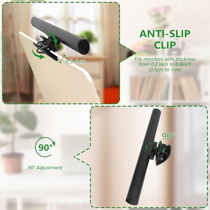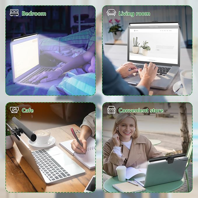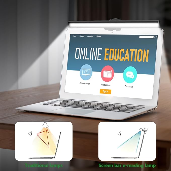 - Space Saving:It sits safety atop your laptop monitor, no base and traditional lamp arm, saving valuable space on your desk, no need giving up space for a desk lamp anymore, especially for small desk