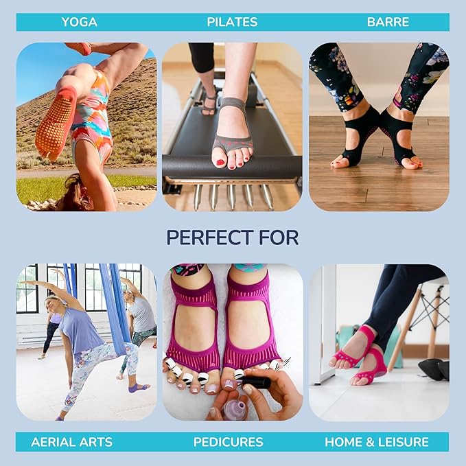 - OPEN-TOE COMFORT & BODY AWARENESS: Toeless socks are crafted to allow sensory contact with the floor, stimulating your foot-brain connection and supporting postural alignment. The lightweight, moisture-wicking fabric keeps your feet dry. Cute pilates socks