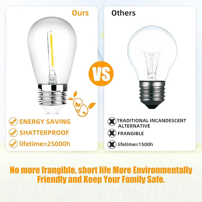 - Wide Application and Linkable: Connect up to 35 sets end-to-end for extensive coverage, perfect for large-scale lighting needs such as gardens, patios, backyards, gazebos, balconies, cafes, bistros, parties, and wedding decorations. Ensure all bulbs are tightly screwed in for optimal waterproof performance