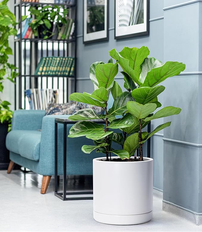 D'vine Dev Set of 2 Plants Pots, 10 Inch Ceramic Planter Pot for Plants with Drainage Hole and Saucer, White, 94-V-E-1