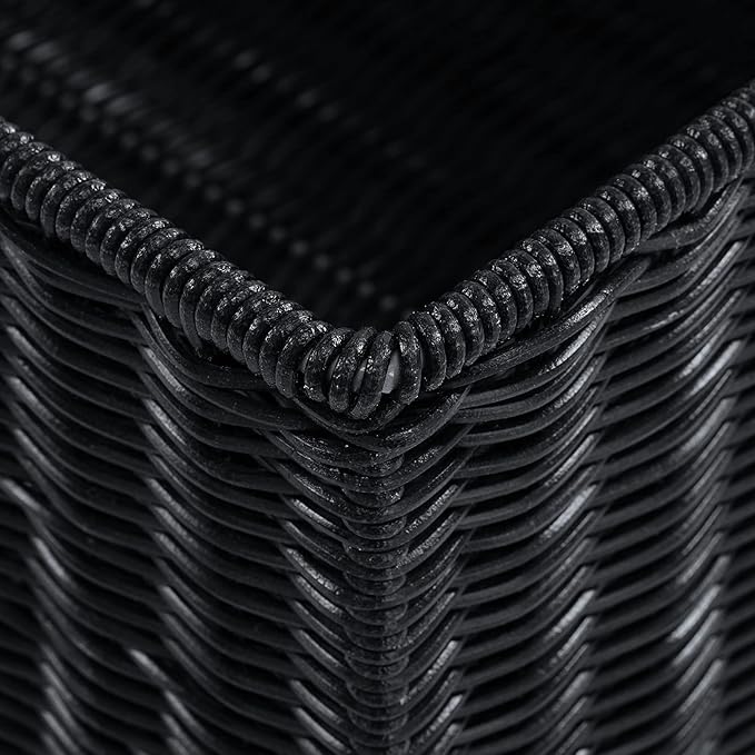 - Durable and Versatile: made of a metal frame and a handwoven polyethylene plastic strapping, hand-woven by skilled workers, clean up and organize your home with these rattan-style plastic baskets.