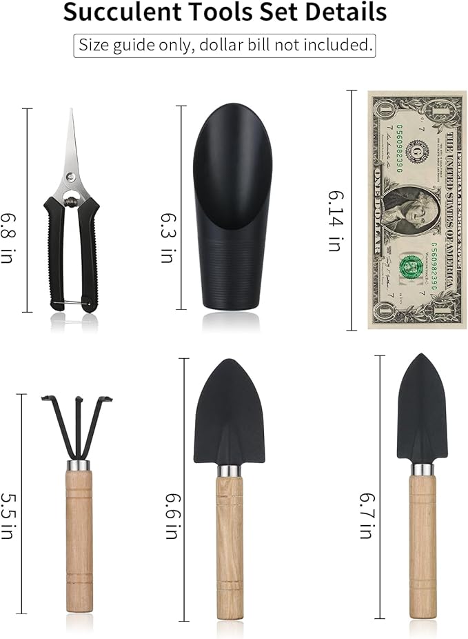 - [OUR MISSION] Succulent tools set is good helper for your small and delicate projects gardening.Our customer rule number 1 :customer is always right!We are committed to providing all customers with high-quality products and the best service, Should you have any questions about the mini garden tools set or after-sale service, please do not hesitate to contact us. We are here for support and advice!