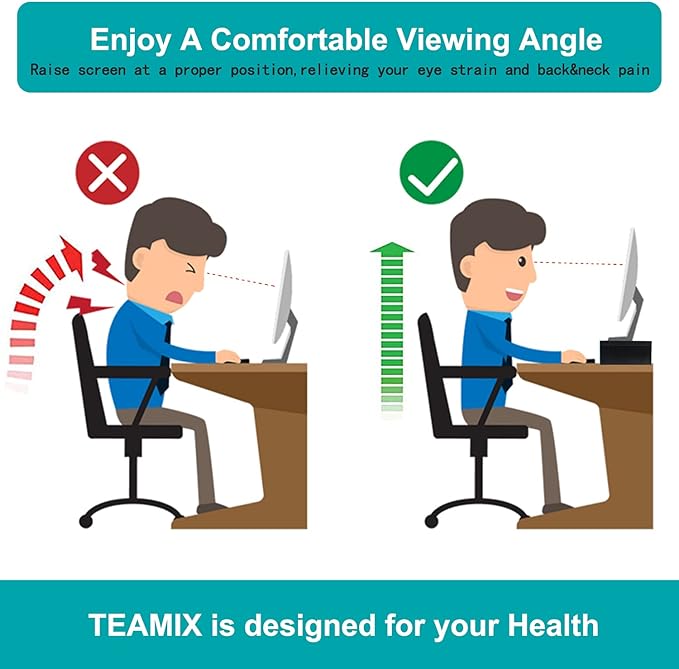 - 【Better Support】Stand can hold 60Ibs, there is a thick steel bar stabilizing support structure on the back avoid shaking. TEAMIX monitor riser made of high quality MDF wood board, strong and sturdy.