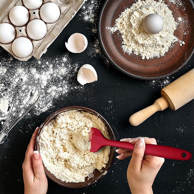 Silicone Spatula 3-piece Set, Ergonomic Handle High Heat-Resistant Spatulas, Non-stick Rubber Spatulas with Stainless Steel Core, Wine Red
