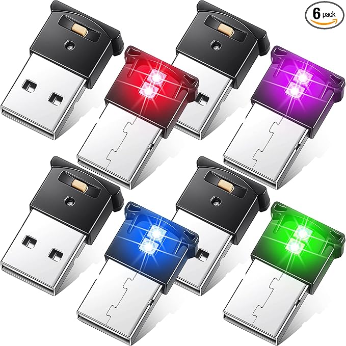 Frienda 6 Pieces Mini USB LED Light, Car LED Interior Lighting 5v Smart USB Atmosphere Light, Laptop Keyboard Office Decoration Night Lamp, Adjustable Brightness, 8 Colors