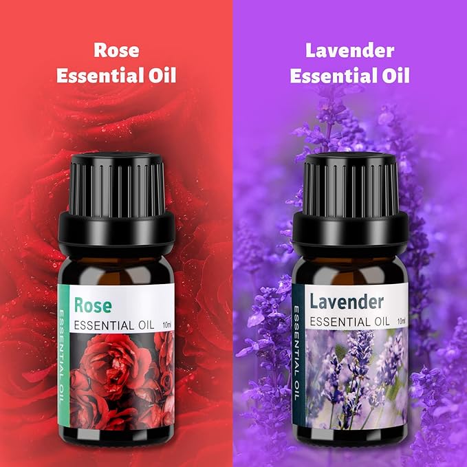 - Diffuser with Remote & Essential Oils Set: The essential oil set includes our most popular black wood grain essential oil diffuser (550ml upgraded version) and top 2 pure essential oils. Lavender,rose essential oils go perfectly with ultrasonic oil diffuser to bring inviting, lively, and aromatic scent.