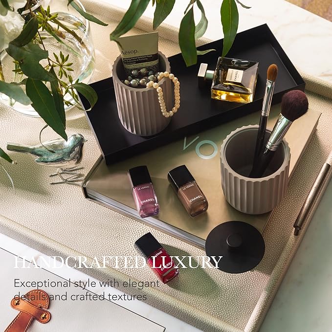 - Handcrafted from Finely Sculpted Resin & Stainless Steel - Our 4 piece bathroom decor sets accessories are designed to add a uniquely modern traditional appeal and infuse effortless style into your space design.