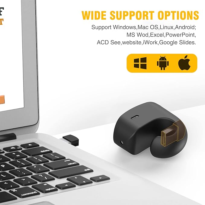 Presentation Clicker USB Rechargeable Powerpoint Clicker, Finger Ring RF 2.4GHz Wireless Presenter Remote Clicker for Powerpoint Presentations for Mac Laptop PC