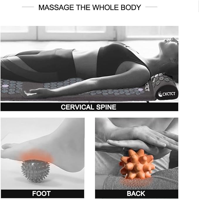 - PROMOTES RELAXATION & STRESS RELIEF:The acupressure mat and pillow set help release tight muscles and relieve stress, faster muscle recovery.acupressure points can stimulate blood circulation, ease tension and induce deep relaxation,release endorphins which act as the body's natural pain relief.