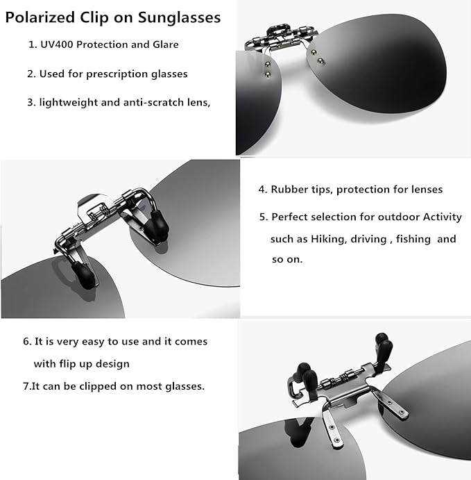 Clip on Flip up Polarized Lens For Prescription Glasses UV Protection Sunglasses (Clear lenses not Polarized)