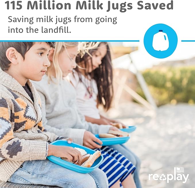 - Sustainable and Reliable: Re-Play's flat plates for adults and kids are made in the USA from recycled milk jugs, making a positive contribution to a more sustainable environment
