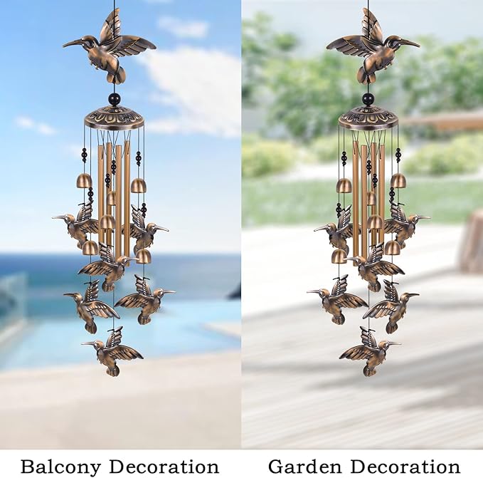 Hummingbird Wind Chimes for Garden, Gifts for Mom, Home, Balconies, Room, Patio, Indoor, Outdoor Hummingbirds Decoration, Hummingbird Wind Catcher, Bronze Memorial Wind Bell, Bird Wind Chimes Decor