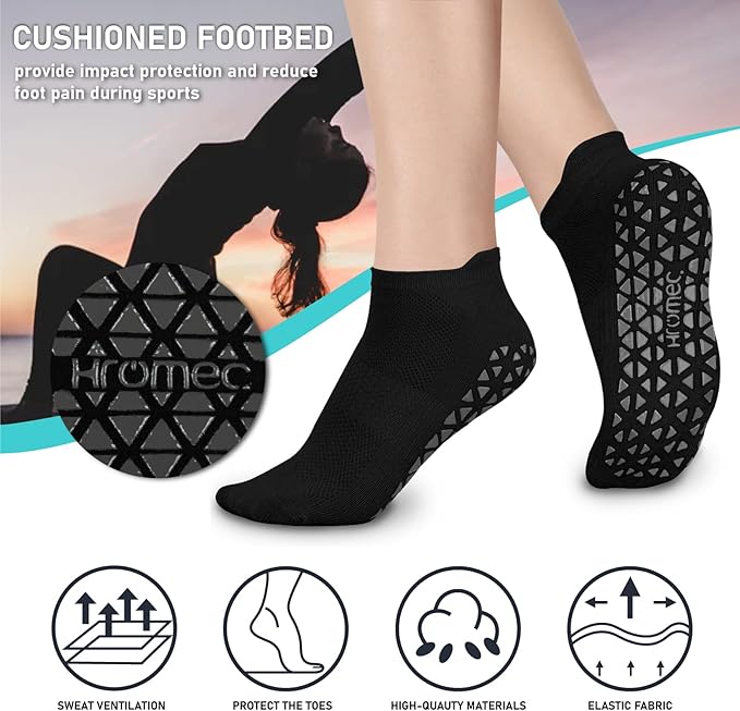 Non Slip Yoga Socks with Grips for Pilates, Ballet, Barre, Barefoot, Hospital Anti Skid Socks for Women and Men