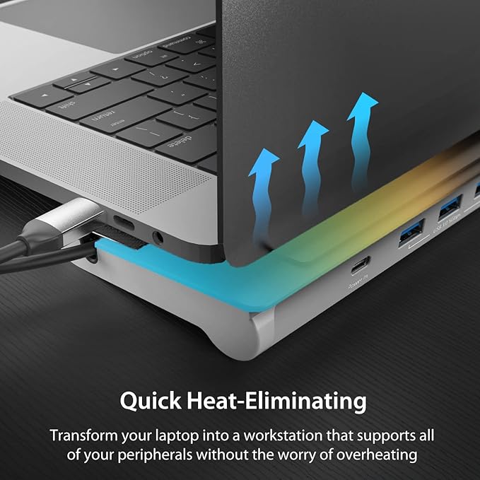 - All 9 ports are combined into one slim docking station with double-sided cable storage compartment, ensuring an easy connection regardless of your USB-C port’s location and supporting all your peripheral needs.