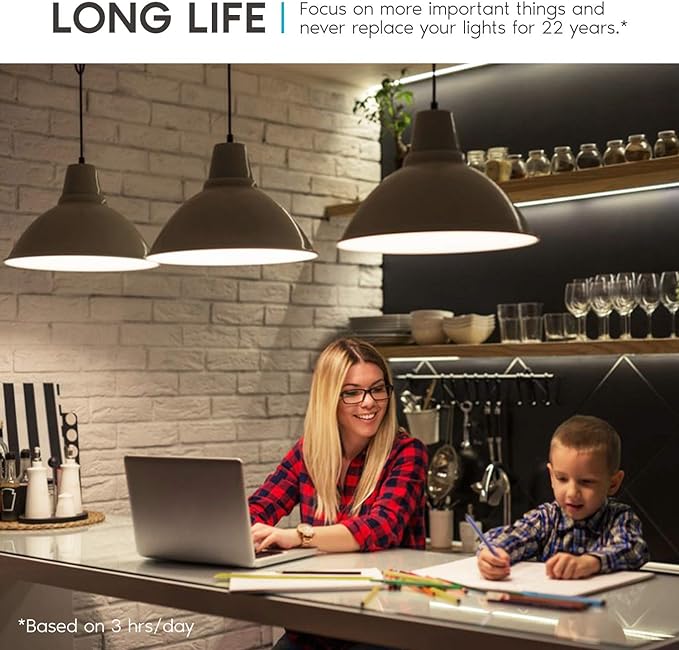 - Continuous Light - Built with an astounding 25,000 hours of lifetime which means no replacement will be needed for the next 22 years. Each e26 Led bulb lasts 10x longer than traditional 100W a19 bulb