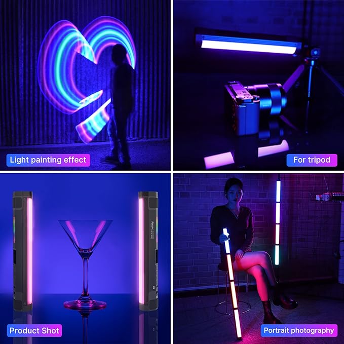 - 🏆【Multiple Usages】: There is a universal 1/4" screw hole on handle bottom, which is suitable for most tripod in the market. So you can hold the handle/adsorb it or use it with other accessories like tripod. As a mini handheld size, lightweight and portable light tube, it is ideal for selfie, vlog, still-life, party atmosphere lights, portrait, ambient shooting and youtube video.
