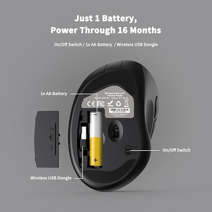 - Premium Long-Lasting Battery Life: Only one AA battery needed, it can work up to 16 months thanks to auto-sleep power saving mode and on/off switch button. Note: The battery life may vary based on use and computing conditions.
