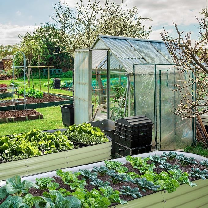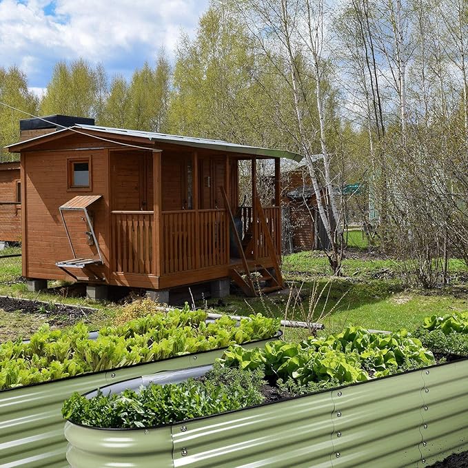 Olle Galvanized Raised Garden Bed Elevated Raised Garden Bed Metal 17" Tall 12-in-1 Grow Herbs and Vegetables Home Garden for Outdoor Backyard, Sage Green 17" Tall
