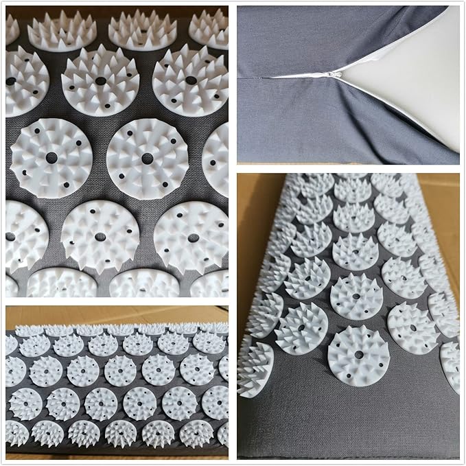 - PREMIUM MATERIAL: The acupressure pillow has thousands of non-toxic plastic nails which sti-mulate acupressure points throughout the body without puncturing skin. The pillow has 1782 acupressure nails. Natural fabric and comfortable sponge.