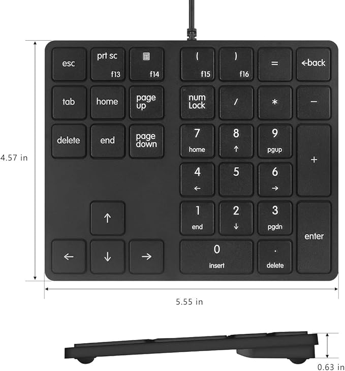 Numeric Keypads Wired Numpad 34 Keys External Mini Slim Keyboard Magic Force for Financial Cashier Securities-Black| Laptop Accessories | Num Pad | Number keypad for Laptop | Work Keyboard