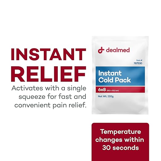 - Dealmed 6" x 8" Instant Cold Pack – Disposable Cold Packs for Injuries, Swelling, Sprains, Muscle Soreness and More, No Refrigeration Single Squeeze Activation (Pack of 6)