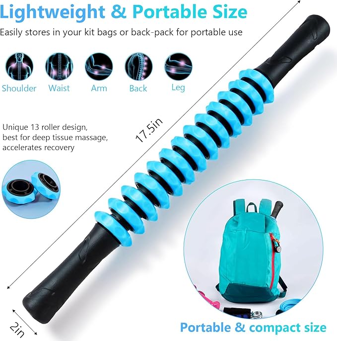 - Additional Rollers - This muscle roller has 13 ABS independent rollers built, the gears are tread design, compared with other products 9 rollers, the additional wheels can better provide massage points, the gap between the gears is specially designed to use it will not make special noise.