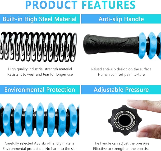 - Durable Materials - Made of high-quality industrial strength materials, ABS independent rollers located in the core of the steel bar, environmentally friendly and durable, fine workmanship, thorough noise when using, will not affect your good mood of exercise. Thermoplastic rubber and polypropylene handles increase the comfort of use and reduce the soreness of your arms over long periods of time.