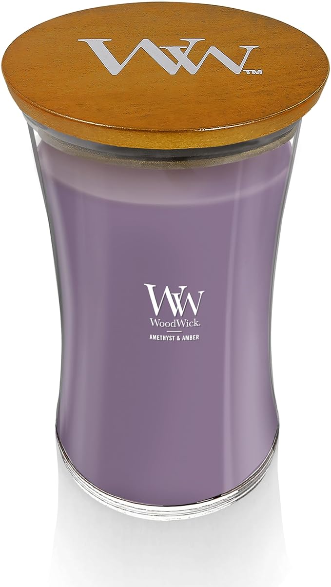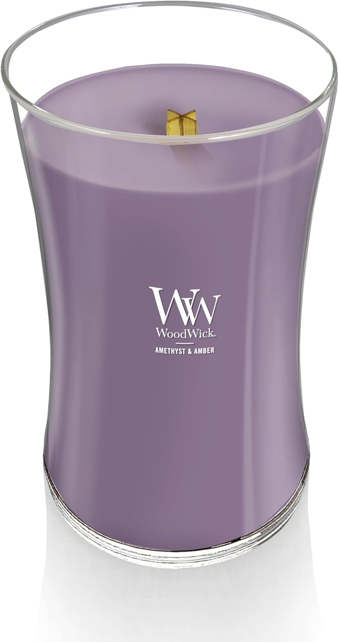 WoodWick Large Hourglass Candle Amethyst/Amber - Premium Soy Blend Wax Pluswick Innovation Wood Wick Made in USA