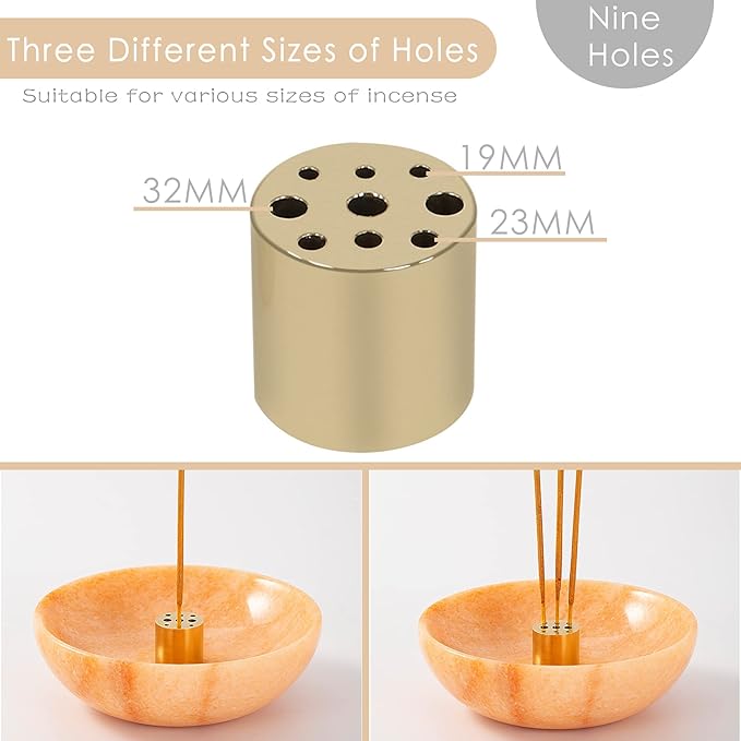 - 【Suitable for all kinds of incense】9-hole incense inserts have three apertures, 19mm, 23mm, 32mm meet a variety of incense such as Indian incense, Japanese incense, etc. It can ensure that most incense sticks stand vertically and do not tilt, and will not drop the incense ash on the table due to tilt.