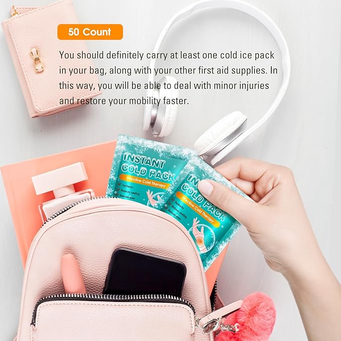 General Medi Instant Ice Cold Pack (4”x 5.5”) – 50 Packs Disposable Cold Therapy Ice Packs for Pain Relief, Swelling, Inflammation, Sprains, Toothache – for Athletes & Outdoor Activities