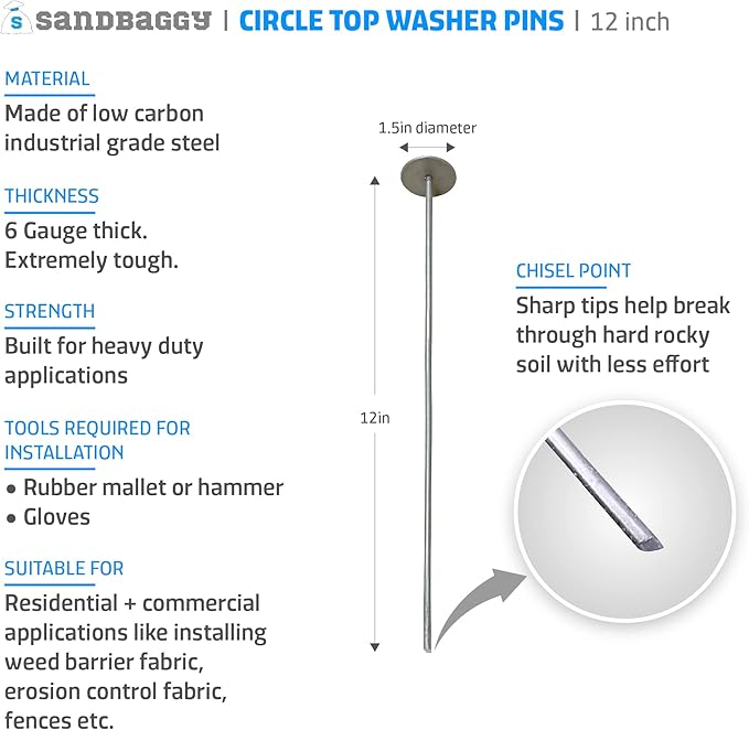 - EXTRA LONG 12 INCHES (NON-GALVANIZED): Great for soft and sandy soils, it will hold down fabric and other materials much better than 6-inch pins. These landscaping pins are non-galvanized, meaning they will rust. Additionally, rust can be beneficial as it helps anchor the pin into the ground, providing enhanced stability for your landscaping projects.